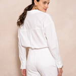 This piece embodies classic tailoring with modern ease, complementing trousers, skirts, or denim for a clean and elegant silhouette.