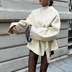 Crafted in a soft mid-weight fabric, this coat drapes beautifully over the body and layers effortlessly over blouses, knits, or dresses. The oversized sleeves and relaxed fit make it ideal for transitional weather and polished everyday wear.
